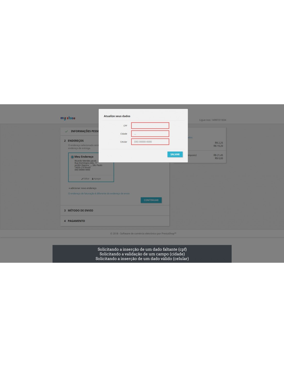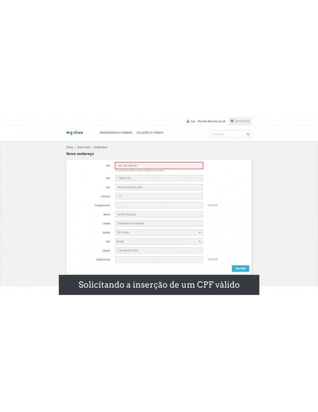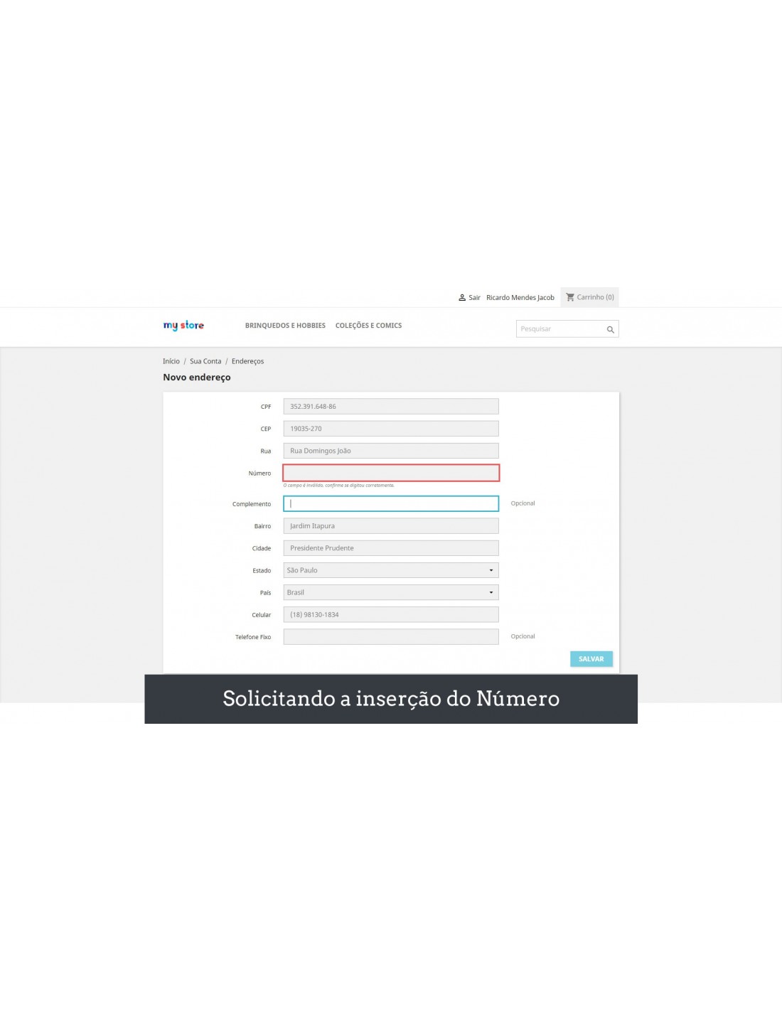 Este módulo faz a inserção do campo de Número no cadastro de endereços e padroniza os campos de CPF, Razão Social/CNPJ/Inscrição Estadual no cadastro do cliente. Além de validar os campos de CEP/CPF e CNPJ, e auto preencher o endereço através do CEP.