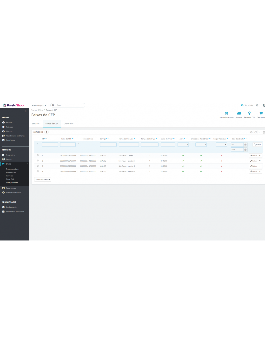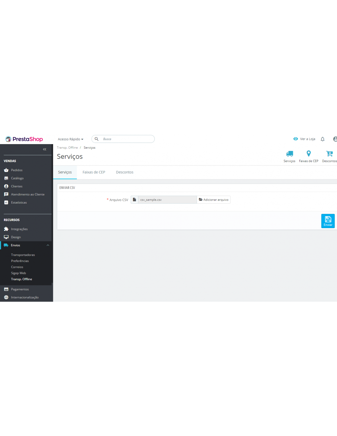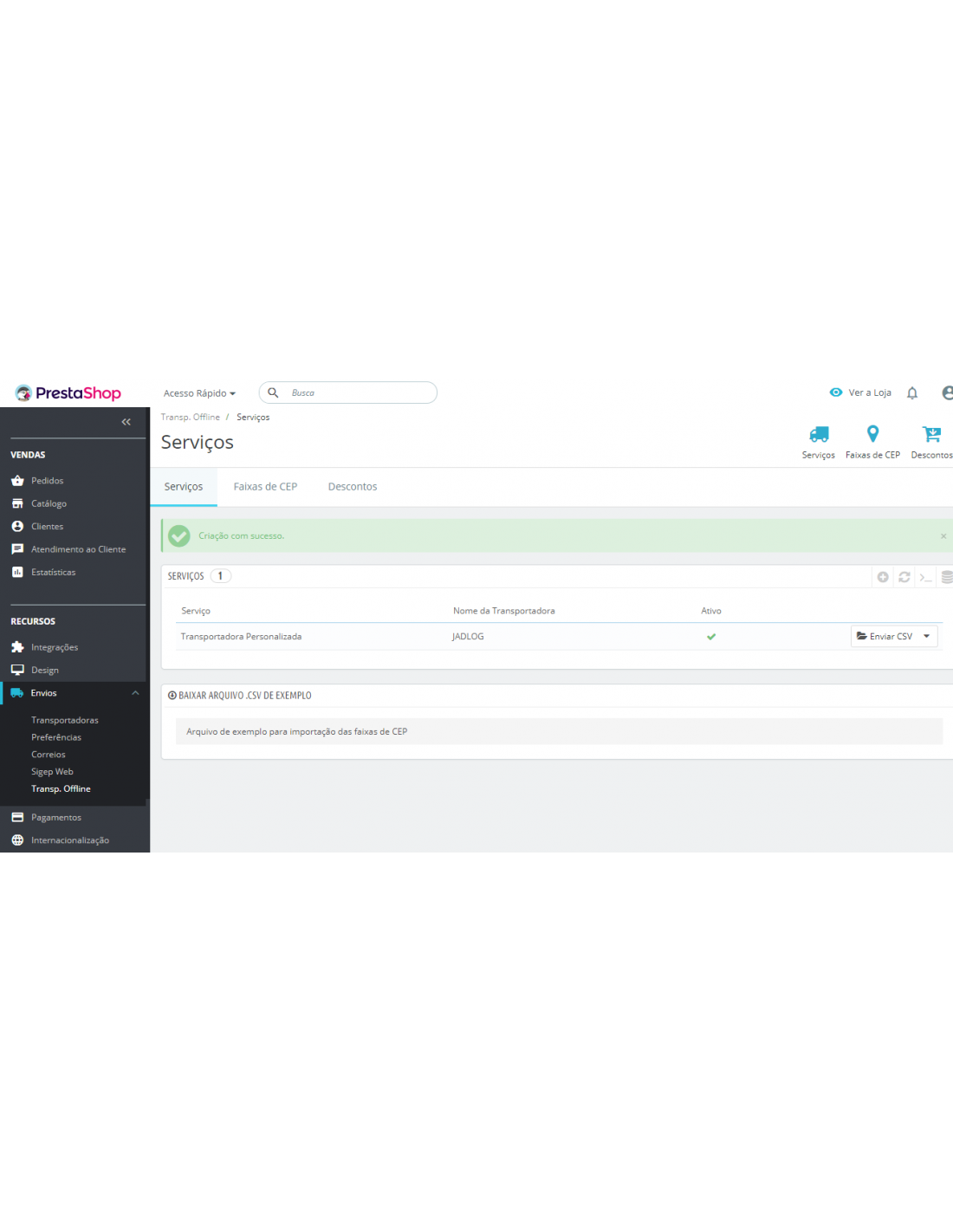 Crie transportadoras personalizadas importando a tabela de frete via CSV em sua loja virtual PrestaShop. Acelere a disponibilidade das consultas de frete e evite que seus serviços de frete fiquem indisponíveis.