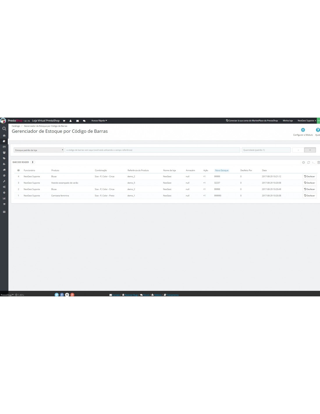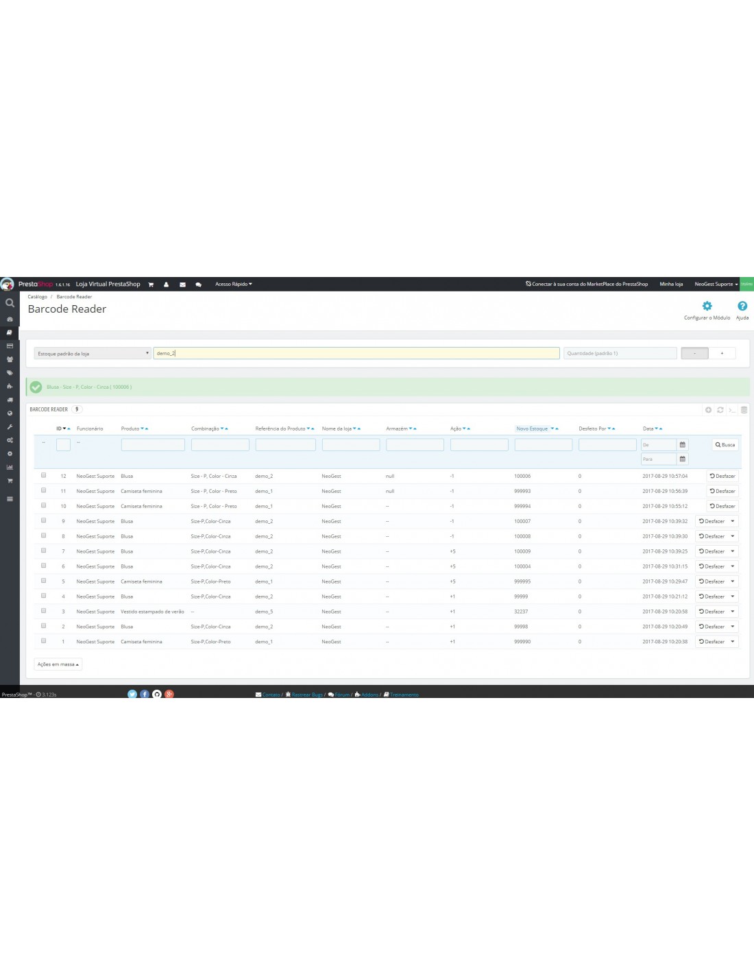Com esse módulo, você pode facilmente atualizar o estoque de sua loja utilizando uma leitora de código de barras. Sempre que receber novos produtos de seu fornecedor, você só precisa ler o código de barras referente a ele, e o estoque de sua loja será automaticamente incrementado. Quando vender um produto em sua loja física, você só precisa ler o código de barras desse produto, e o estoque será decrementado.
