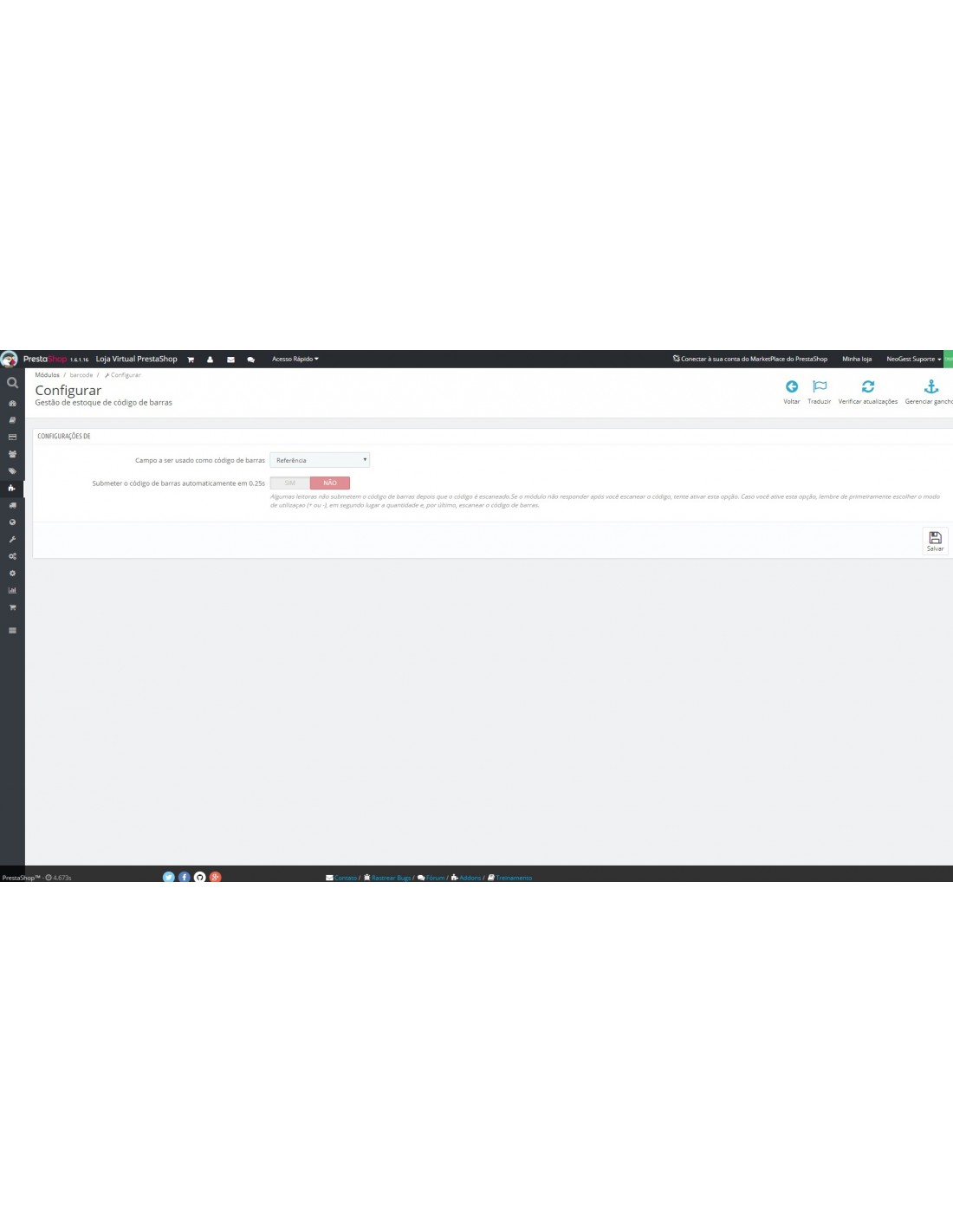 Após instalar o módulo, você deve configurar qual o campo de seus produtos que contém o código de barras a ser utilizado. Pode ser o campo EAN13, UPC ou referência.