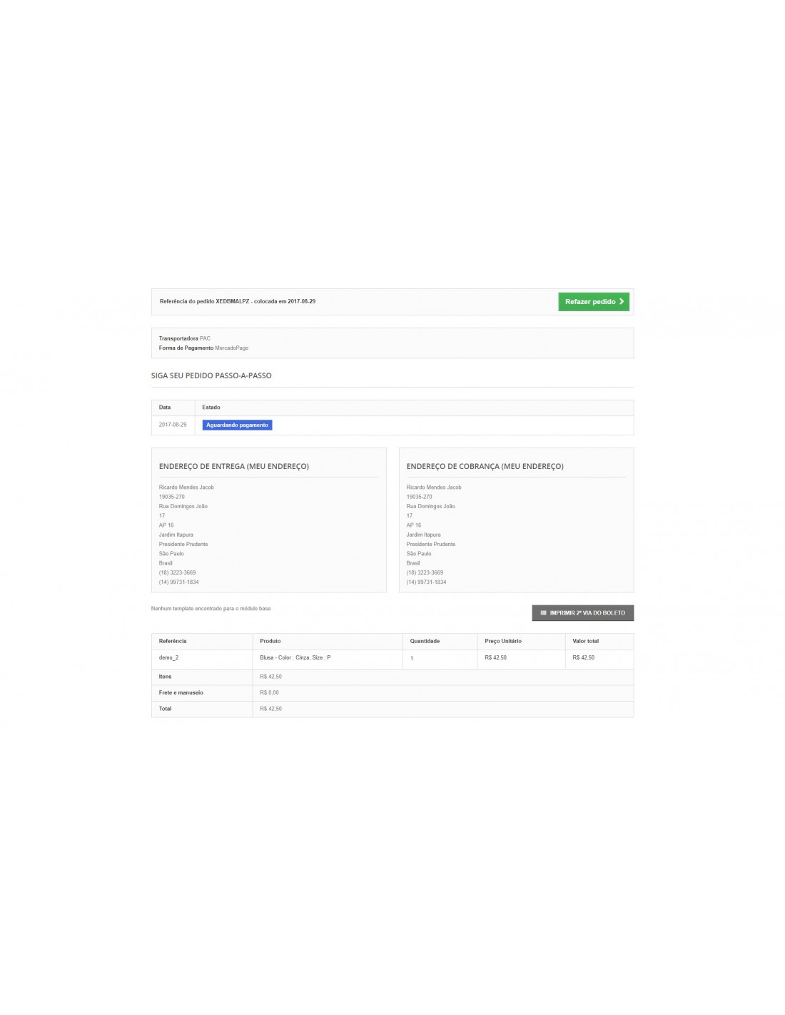 Módulo MercadoPago Transparente - Boleto Bancário para PrestaShop
